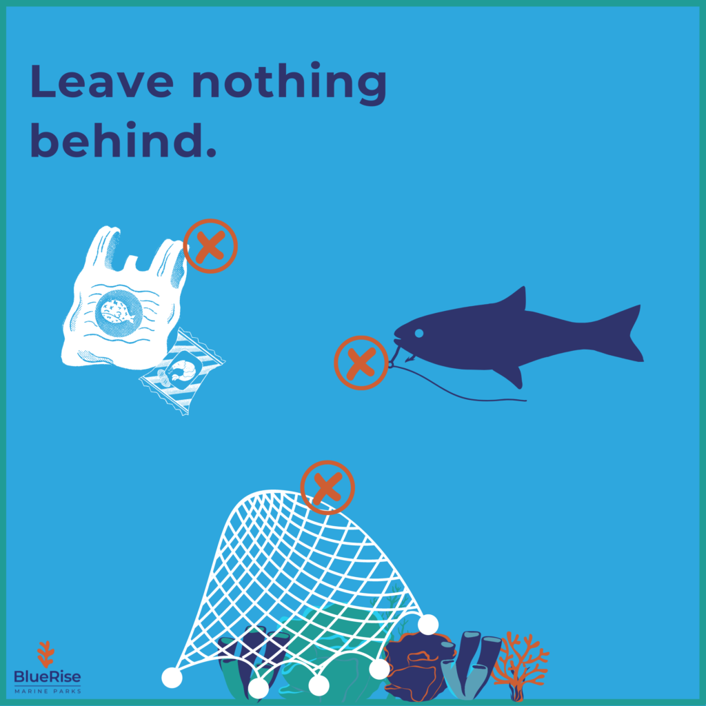 • Make sure that anything that enters the water with you, leaves with you. In other words, don’t drop litter underwater.
