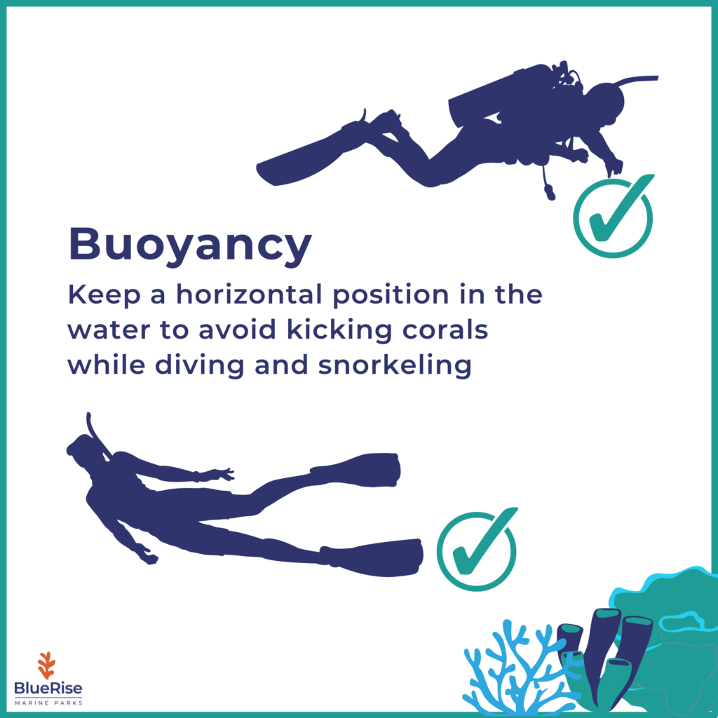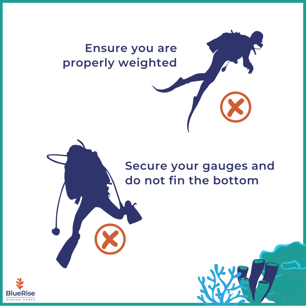 • Before you travel, practice your skills – particularly in terms of buoyancy, swimming against the current, and maintaining a certain position and depth. The more confident you are in the water, the less likely you are to make uncontrolled movements that could cause harm.