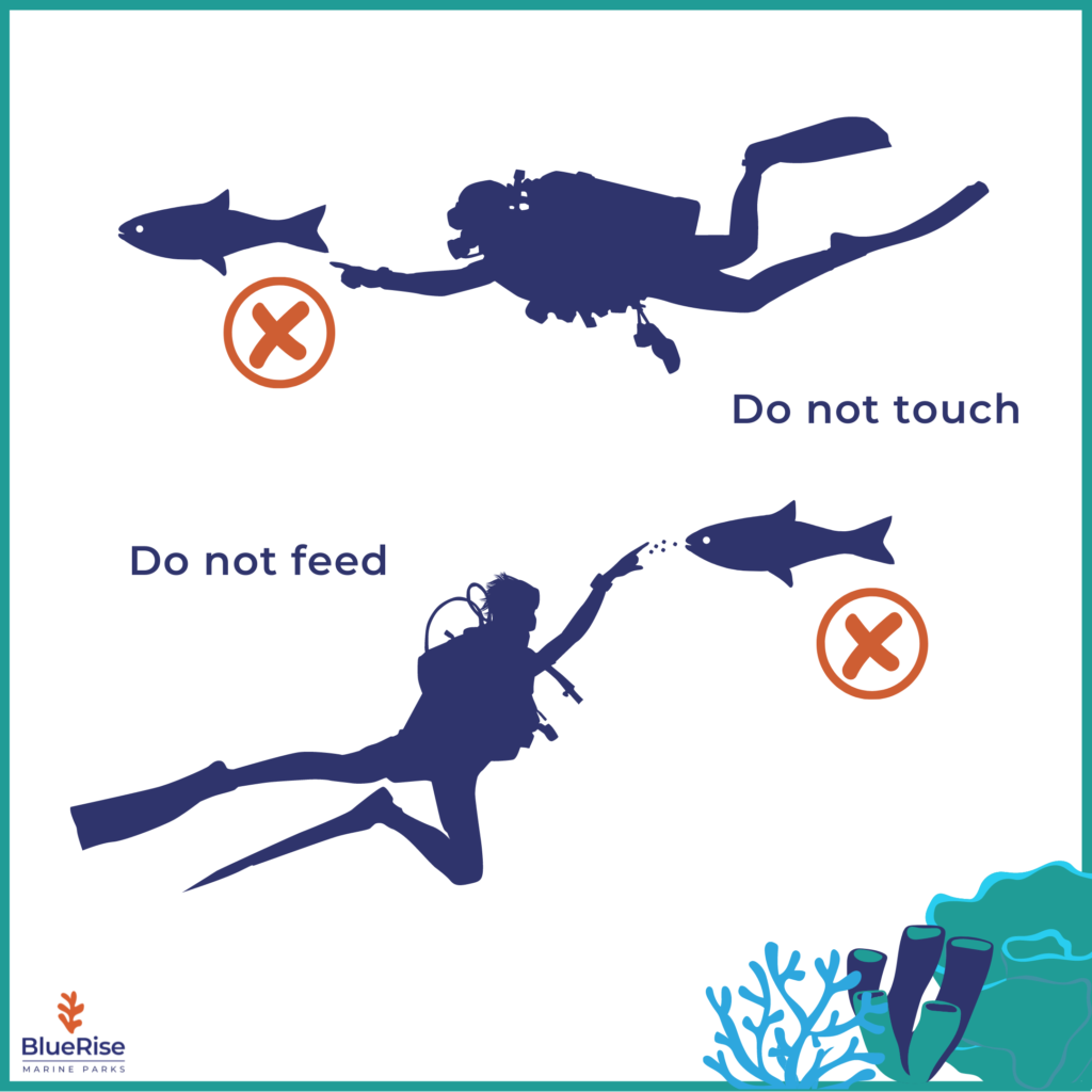 • Never touch or feed any marine species – you could cause injury, make it more prone to disease, or change its behaviour.